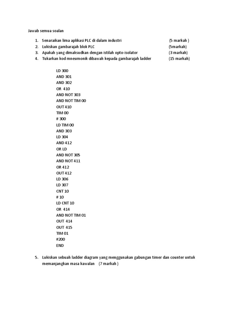Contoh Soalan Plc